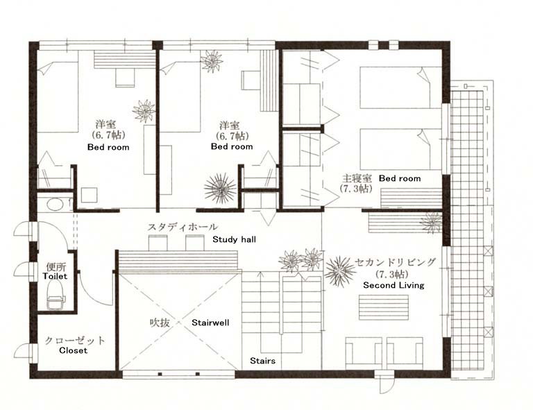 | This is a plan while planning at that time. Because it is an interesting plan, I introduce it here. Families are six people. They are requesting a house that is wider and more cheerful than the house now. This demand is natural. All the people want to make it to a house that is better than the house now. But, the site in this house is small. The design of a new house has changed many times up to now. It is said that the house that I really want cannot be built if it doesn't experience build the house three times in Japan. However, the person with whom the house is built three times is a little. The house is expensive. Therefore, I often say that I will make the plan of the house ten times on the desk. This design might be how many. I cannot recall it. The customer has said the best plan up to now. This plan achieves the area, brightness, and happiness in the house by Stairwell. Stairwell has the function. [No.1] Stairwell makes space with a high ceiling. [No.2] Stairwell divides the living room into two. [No.3] Stairwell connects all the spaces. [No.4] Stairwell leads the light of the sky. [No.5] Stairwell makes a fashionable space. Stairwell becomes a free decoration easily. However, Stairwell of this house is made a wide, cheerful, happy house. Please see. |